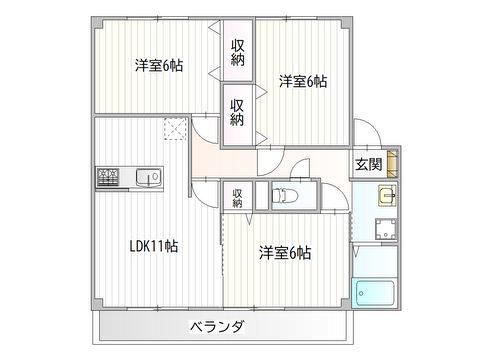 | 間取詳細 | LDK11帖、洋室6帖、洋室6帖、洋室6帖 | 建物構造 | 軽量鉄骨2階建 |