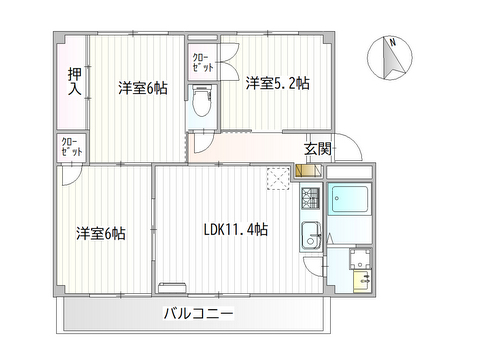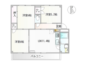 | 間取詳細 | LDK11.4帖、洋室5.2帖、洋室6帖、洋室6帖 | 建物構造 | 鉄骨造 |