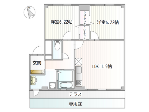| 間取詳細 | LDK11.9帖、洋室6.2帖、洋室6.2帖 | 建物構造 | 鉄骨2階建 |