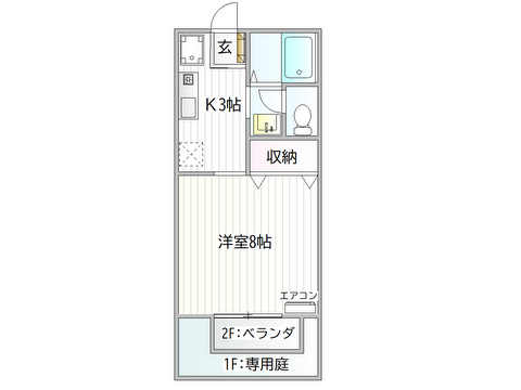 | 設備・条件 | バス・トイレ別/一口ガスコンロ/シャワー/バルコニー/室内洗濯置場/エアコン/TVインターホン/3カ所給湯/駐輪場/シューズボックス | ||