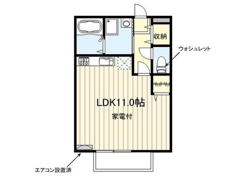 | 設備・条件 | バス・トイレ別室 / シャワー /追炊機能付浴槽 / IHコンロ / TVインターホン / 室内洗濯置場 / シューズボックス / 給湯 / エアコン1基 / | ||