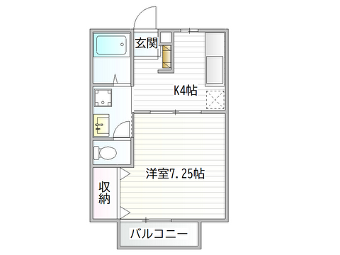 | 間取詳細 | K4帖、洋室7.25帖、 | 建物構造 | 鉄骨2階建 |