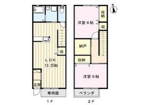 | 間取詳細 | LDK13.25帖、洋室6帖、洋室6帖、納戸2帖 | 建物構造 | 鉄骨2階建 |